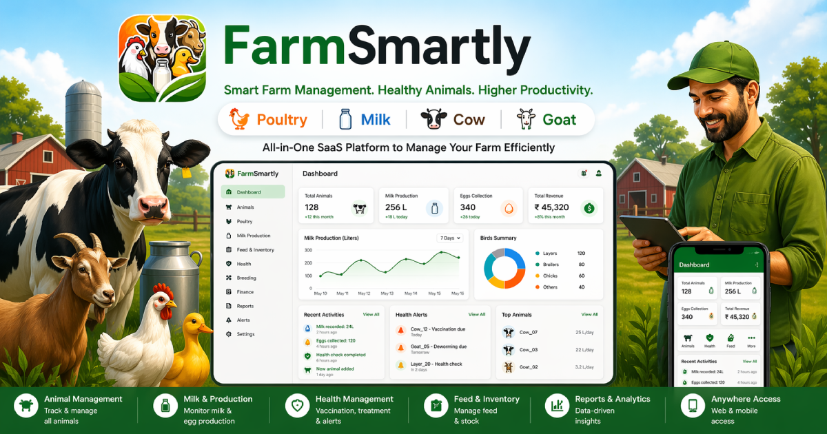 FarmSmartly is designed for farms in India, Malaysia, Thailand and Indonesia, with workflows tailored for poultry farm management, egg production tracking and future livestock modules.